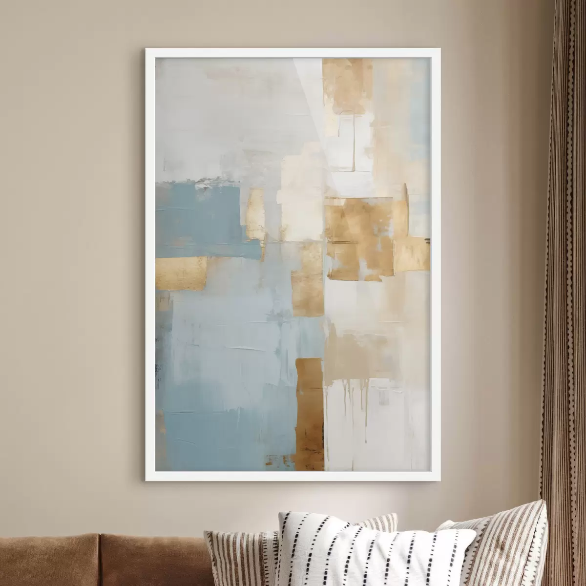 Plakatas Abstrakčios geometrinės formos su geltonos, mėlynos ir baltos spalvomis, tekstūruota ir minimalistinė kompozicija f47882