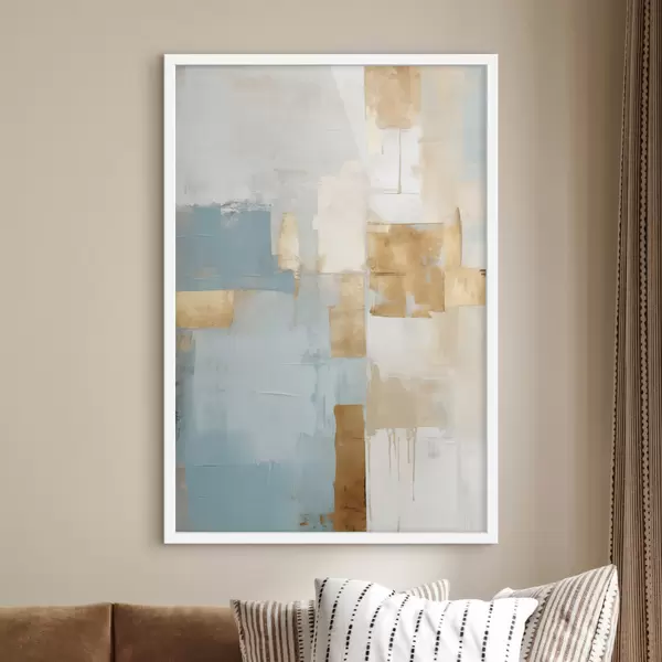 Plakatas Abstrakčios geometrinės formos su geltonos, mėlynos ir baltos spalvomis, tekstūruota ir minimalistinė kompozicija Ne f47882