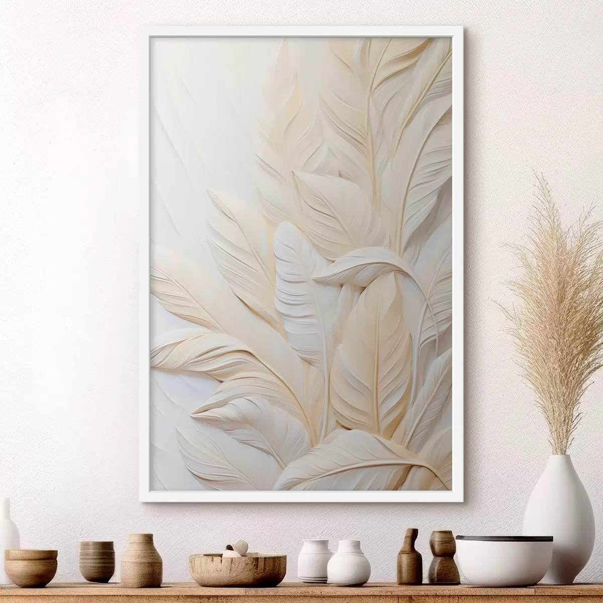 Plakatas Kreminės spalvos plunksnos, persidengiančios viena kitą, su švelniu, šviesiu fonu Ne f47883