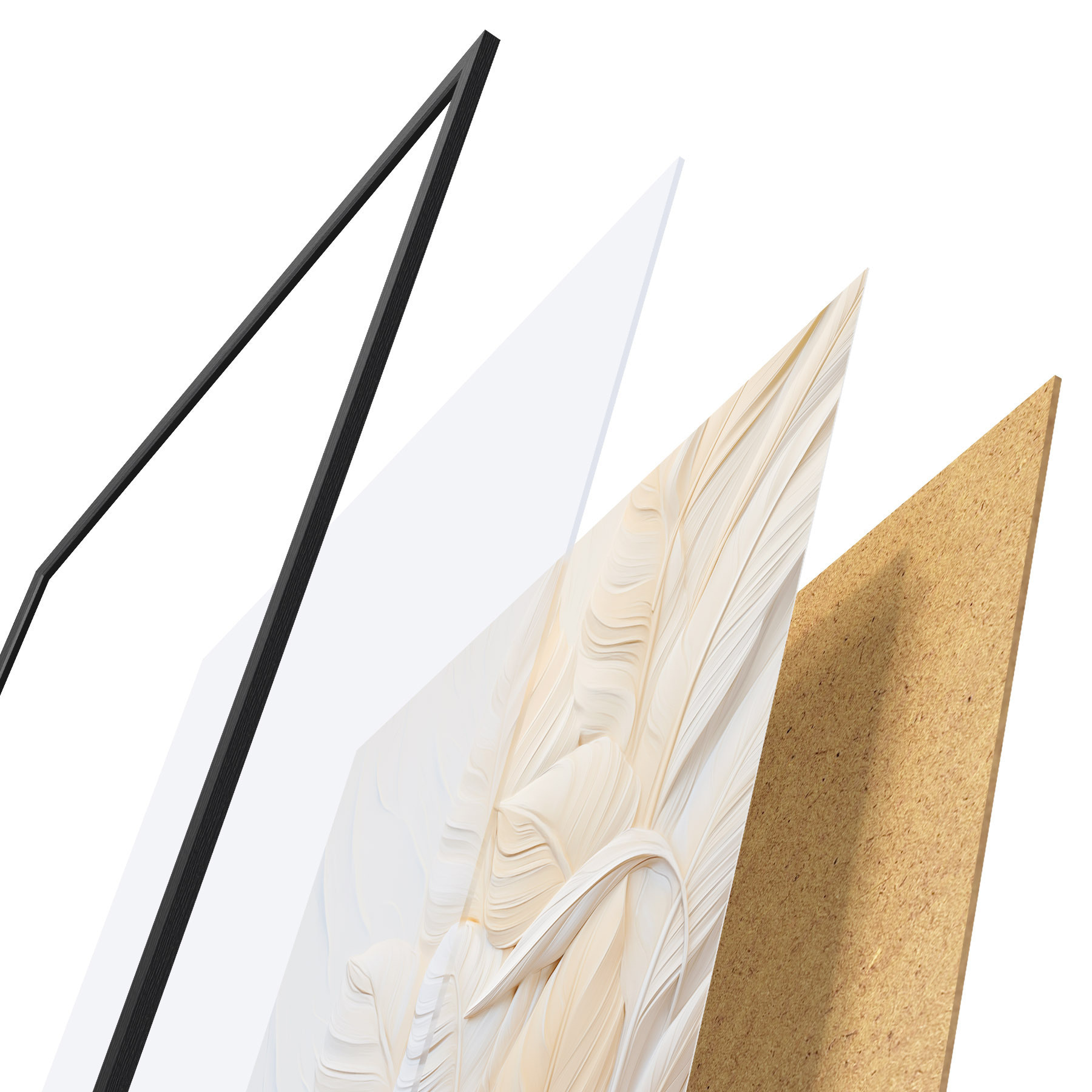 Plakatą sudaro rėmas, pleksiklas, atspausdintas vaizdas ir medžio drožlių plokštės pagrindas. Plakatą galima iš karto pakabinti ant sienos dėl kitoje pusėje esančių laikiklių.