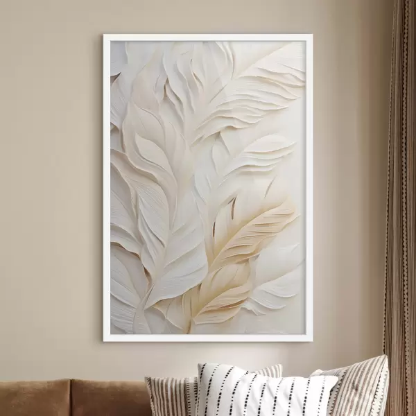 Plakatas Kreminės spalvos plunksnos, persidengiančios viena kitą, su švelniu, šviesiu fonu f47884