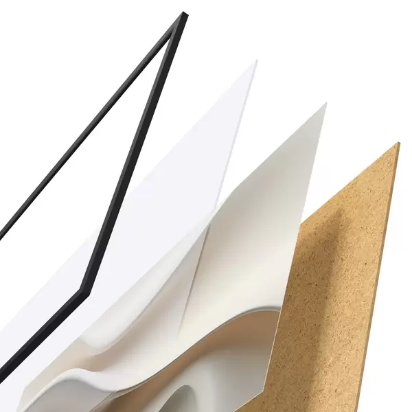 Plakatą sudaro rėmas, pleksiklas, atspausdintas vaizdas ir medžio drožlių plokštės pagrindas. Plakatą galima iš karto pakabinti ant sienos dėl kitoje pusėje esančių laikiklių.