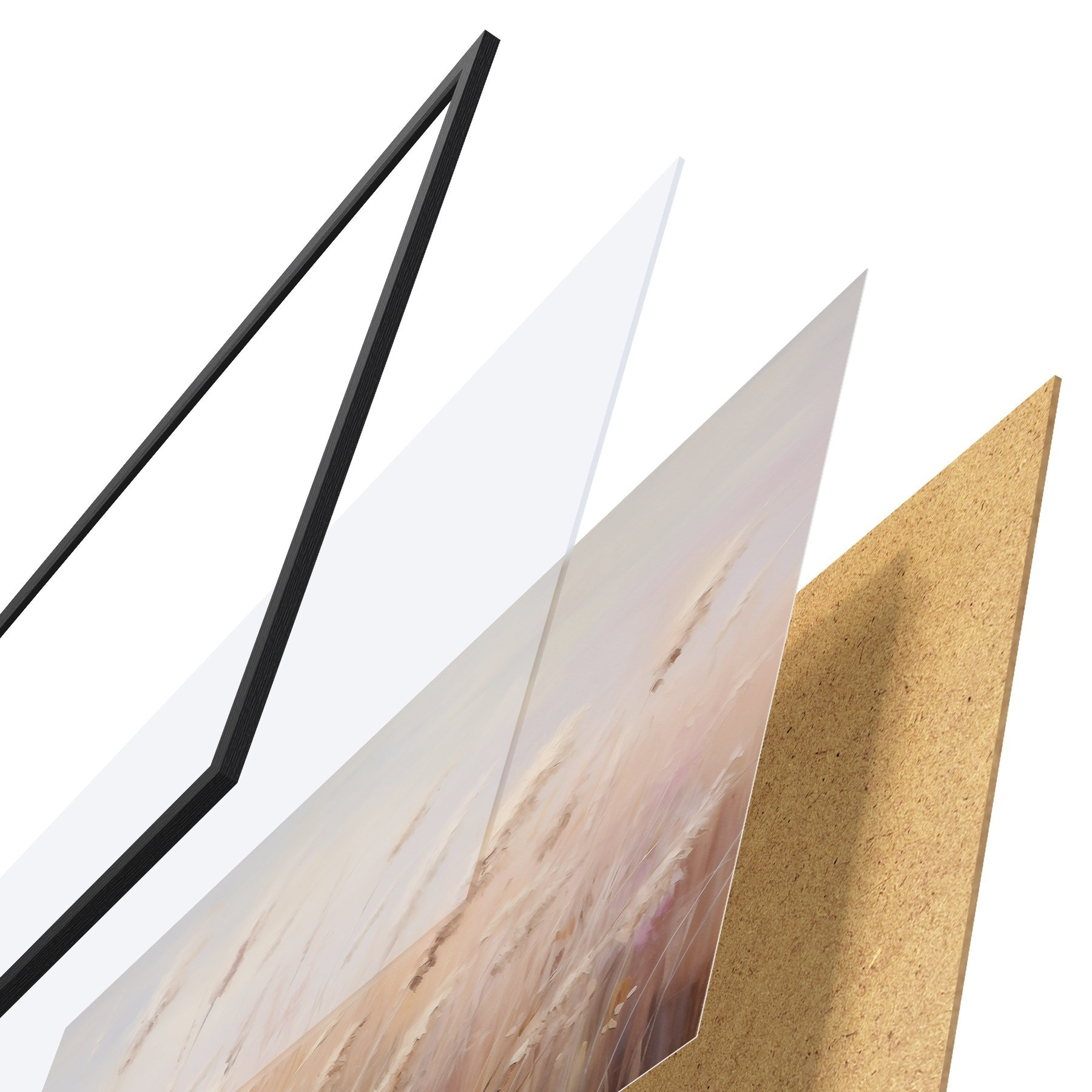 Plakatą sudaro rėmas, pleksiklas, atspausdintas vaizdas ir medžio drožlių plokštės pagrindas. Plakatą galima iš karto pakabinti ant sienos dėl kitoje pusėje esančių laikiklių.
