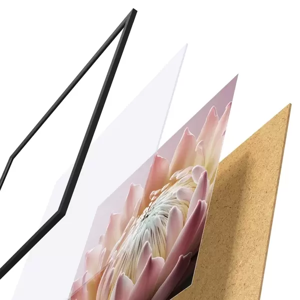 Plakatą sudaro rėmas, pleksiklas, atspausdintas vaizdas ir medžio drožlių plokštės pagrindas. Plakatą galima iš karto pakabinti ant sienos dėl kitoje pusėje esančių laikiklių.