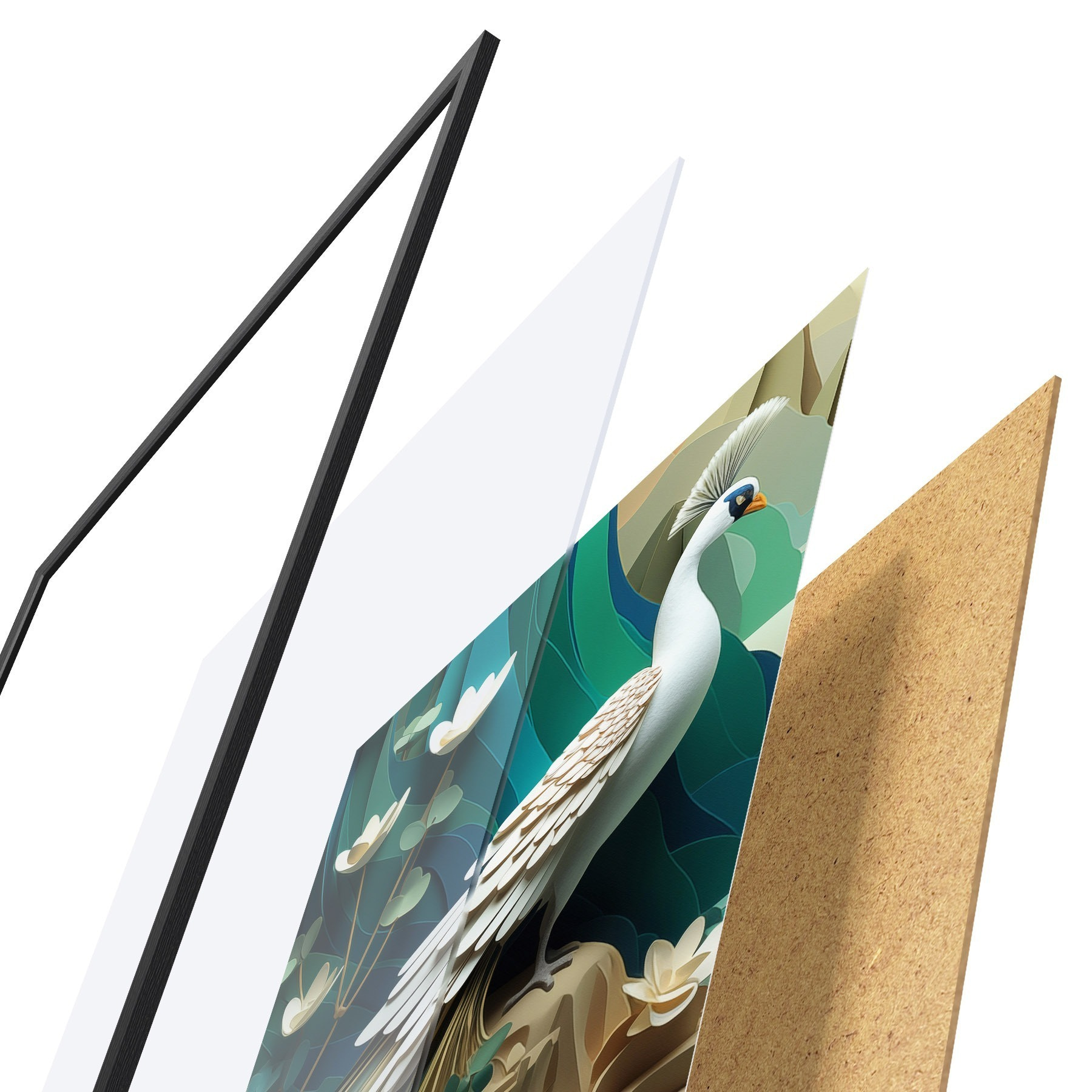 Plakatą sudaro rėmas, pleksiklas, atspausdintas vaizdas ir medžio drožlių plokštės pagrindas. Plakatą galima iš karto pakabinti ant sienos dėl kitoje pusėje esančių laikiklių.