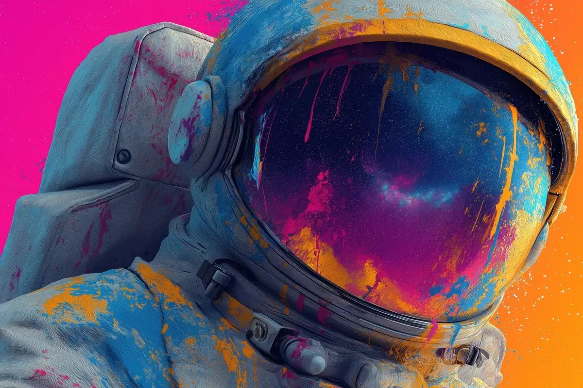 Plakatas Astronautas su ryškia šalmu f47905