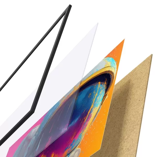 Plakatą sudaro rėmas, pleksiklas, atspausdintas vaizdas ir medžio drožlių plokštės pagrindas. Plakatą galima iš karto pakabinti ant sienos dėl kitoje pusėje esančių laikiklių.