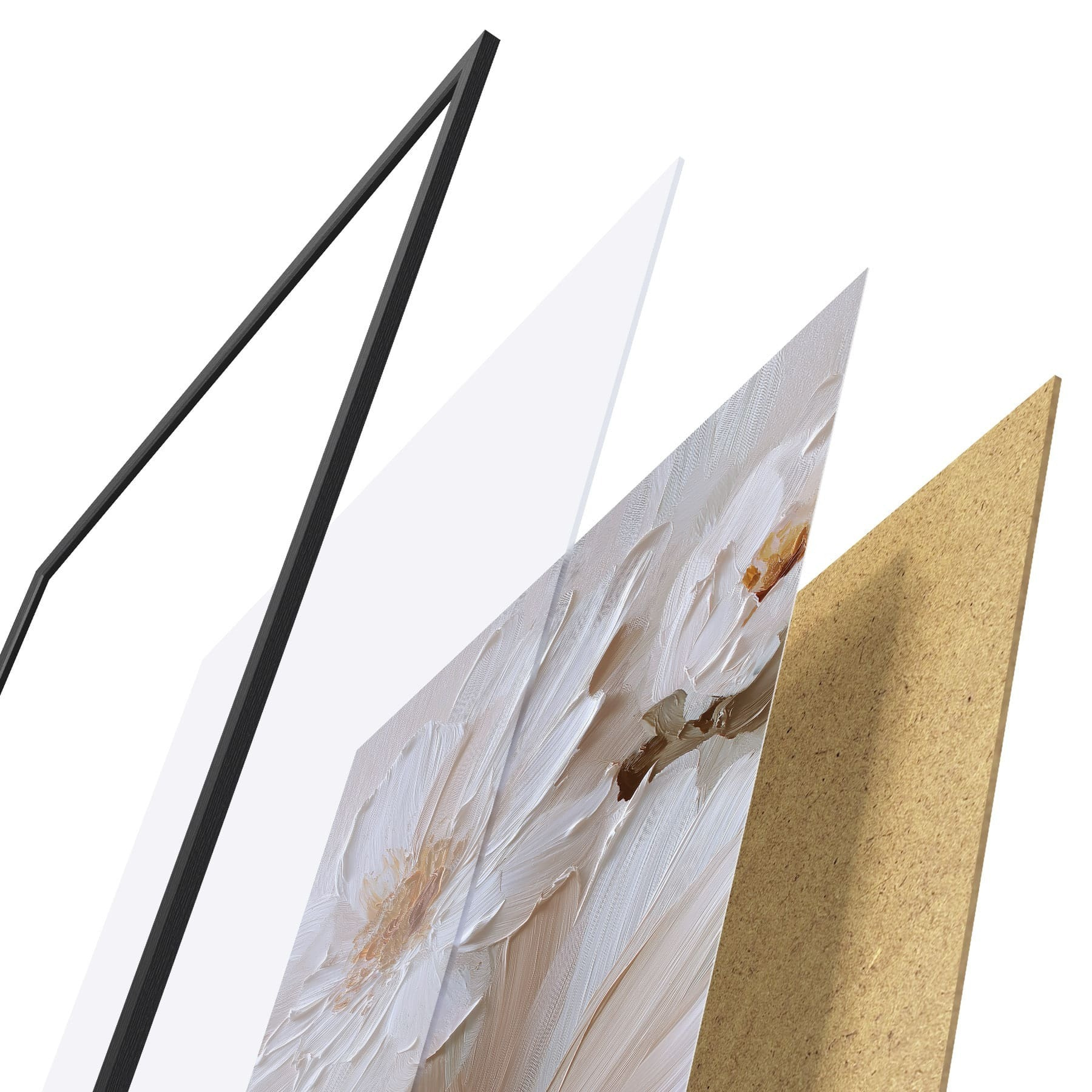 Plakatą sudaro rėmas, pleksiklas, atspausdintas vaizdas ir medžio drožlių plokštės pagrindas. Plakatą galima iš karto pakabinti ant sienos dėl kitoje pusėje esančių laikiklių.