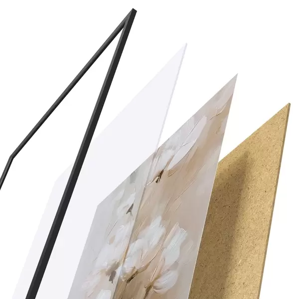 Plakatą sudaro rėmas, pleksiklas, atspausdintas vaizdas ir medžio drožlių plokštės pagrindas. Plakatą galima iš karto pakabinti ant sienos dėl kitoje pusėje esančių laikiklių.