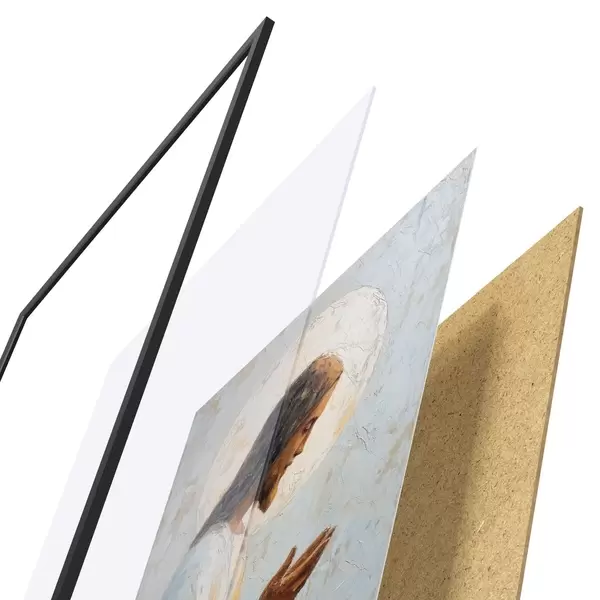 Plakatą sudaro rėmas, pleksiklas, atspausdintas vaizdas ir medžio drožlių plokštės pagrindas. Plakatą galima iš karto pakabinti ant sienos dėl kitoje pusėje esančių laikiklių.