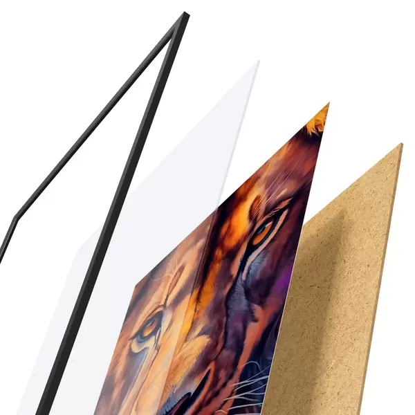 Plakatą sudaro rėmas, pleksiklas, atspausdintas vaizdas ir medžio drožlių plokštės pagrindas. Plakatą galima iš karto pakabinti ant sienos dėl kitoje pusėje esančių laikiklių.