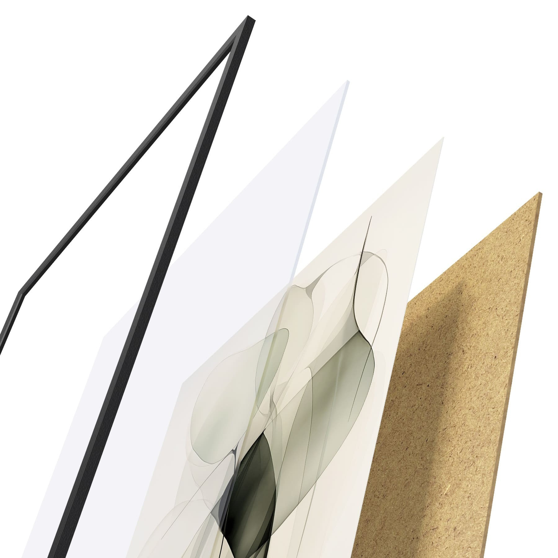 Plakatą sudaro rėmas, pleksiklas, atspausdintas vaizdas ir medžio drožlių plokštės pagrindas. Plakatą galima iš karto pakabinti ant sienos dėl kitoje pusėje esančių laikiklių.