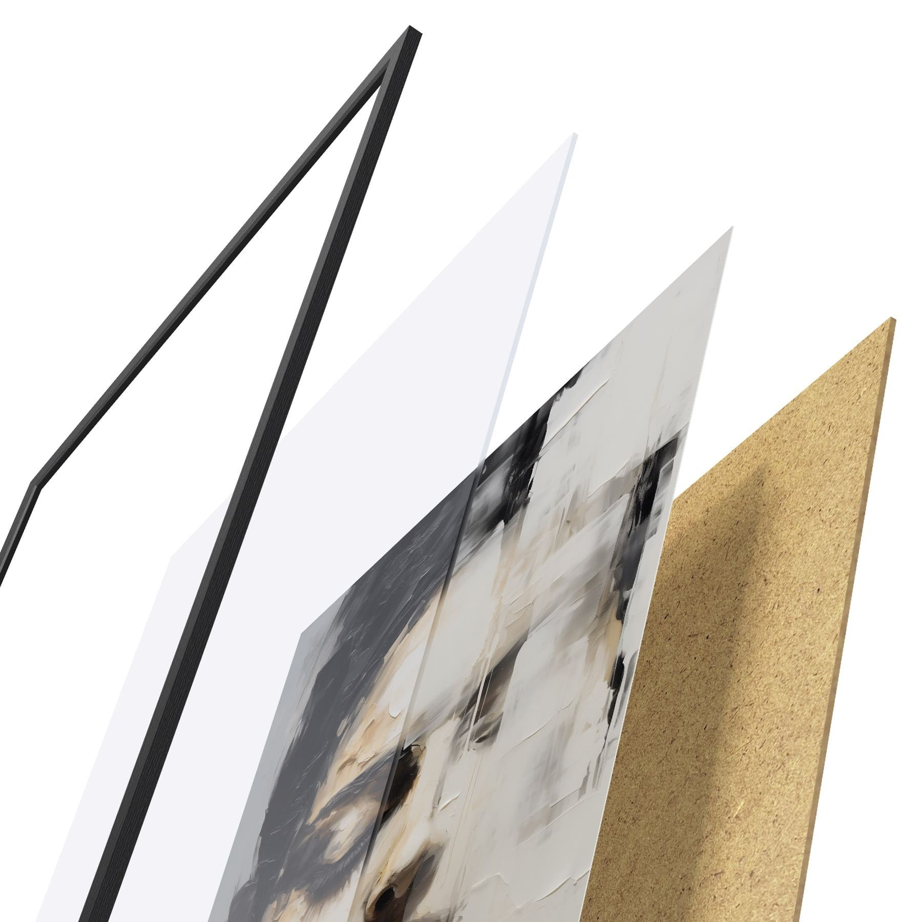 Plakatą sudaro rėmas, pleksiklas, atspausdintas vaizdas ir medžio drožlių plokštės pagrindas. Plakatą galima iš karto pakabinti ant sienos dėl kitoje pusėje esančių laikiklių.