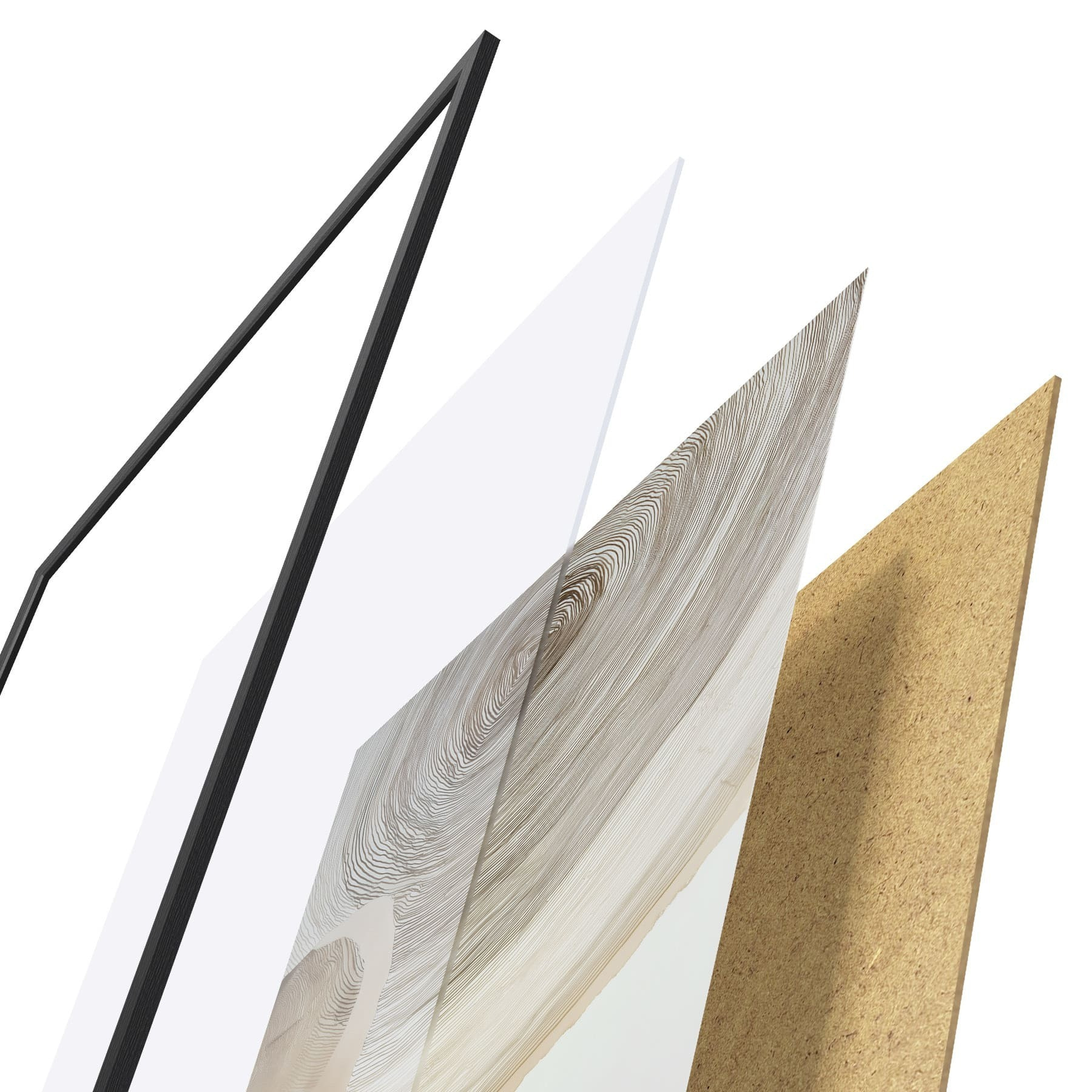 Plakatą sudaro rėmas, pleksiklas, atspausdintas vaizdas ir medžio drožlių plokštės pagrindas. Plakatą galima iš karto pakabinti ant sienos dėl kitoje pusėje esančių laikiklių.