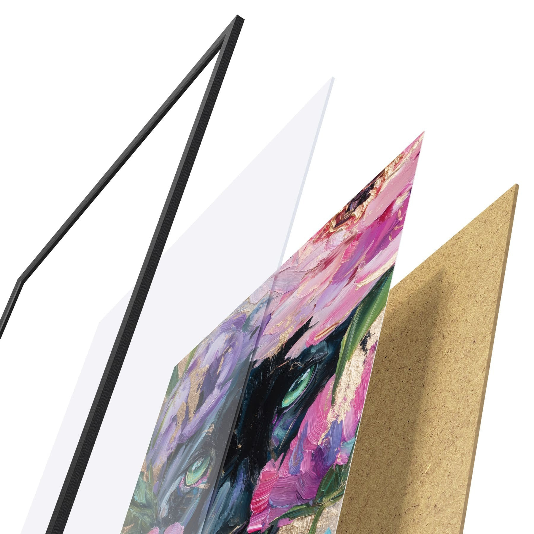 Plakatą sudaro rėmas, pleksiklas, atspausdintas vaizdas ir medžio drožlių plokštės pagrindas. Plakatą galima iš karto pakabinti ant sienos dėl kitoje pusėje esančių laikiklių.