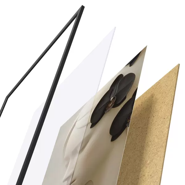 Plakatą sudaro rėmas, pleksiklas, atspausdintas vaizdas ir medžio drožlių plokštės pagrindas. Plakatą galima iš karto pakabinti ant sienos dėl kitoje pusėje esančių laikiklių.
