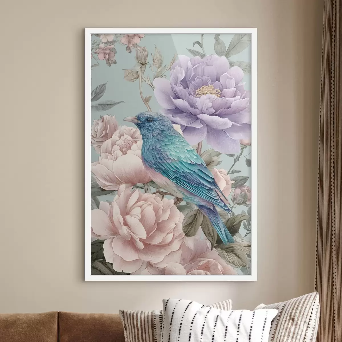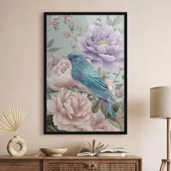 Plakatas dainuojantys paukščiai rožėse Ne f47944
