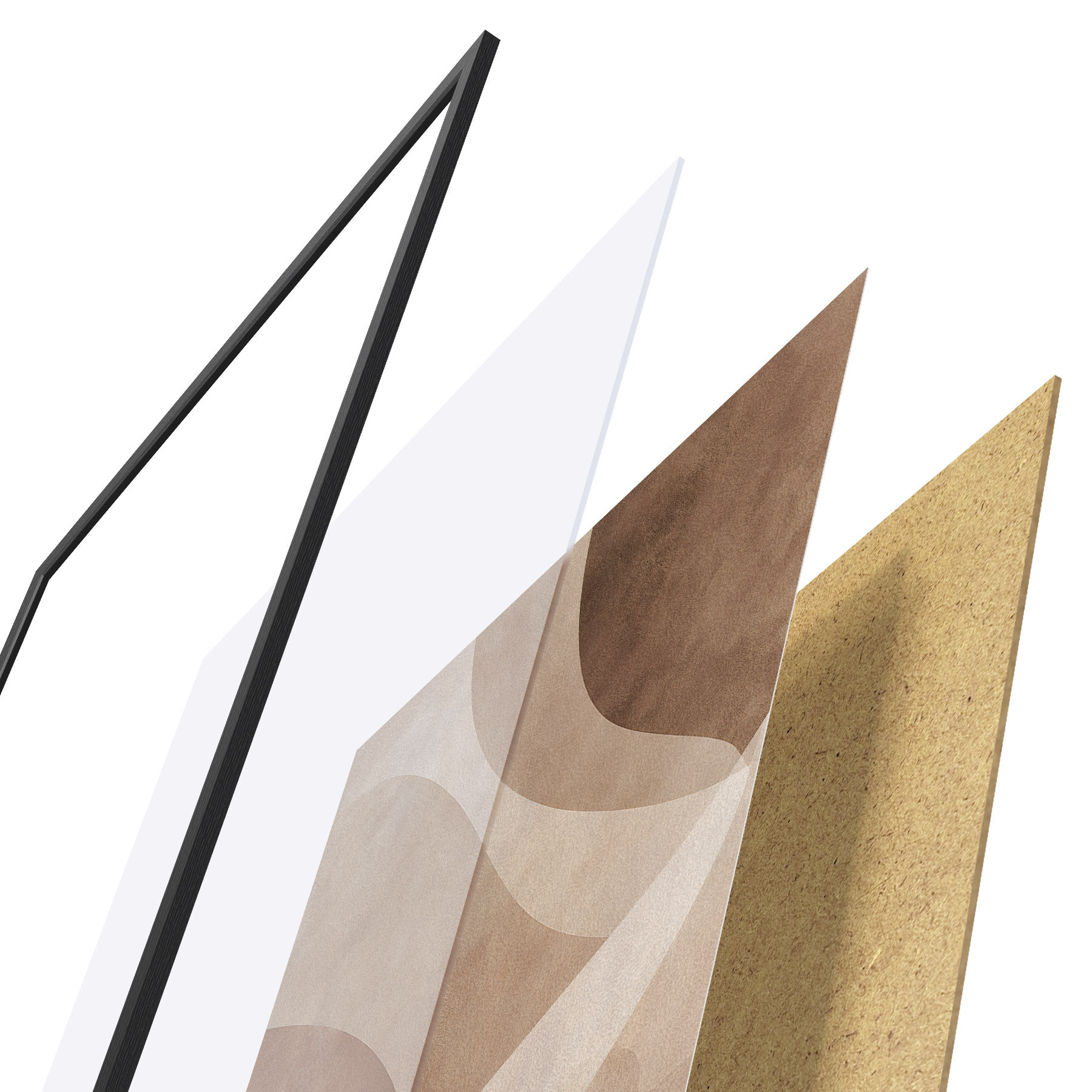 Plakatą sudaro rėmas, pleksiklas, atspausdintas vaizdas ir medžio drožlių plokštės pagrindas. Plakatą galima iš karto pakabinti ant sienos dėl kitoje pusėje esančių laikiklių.