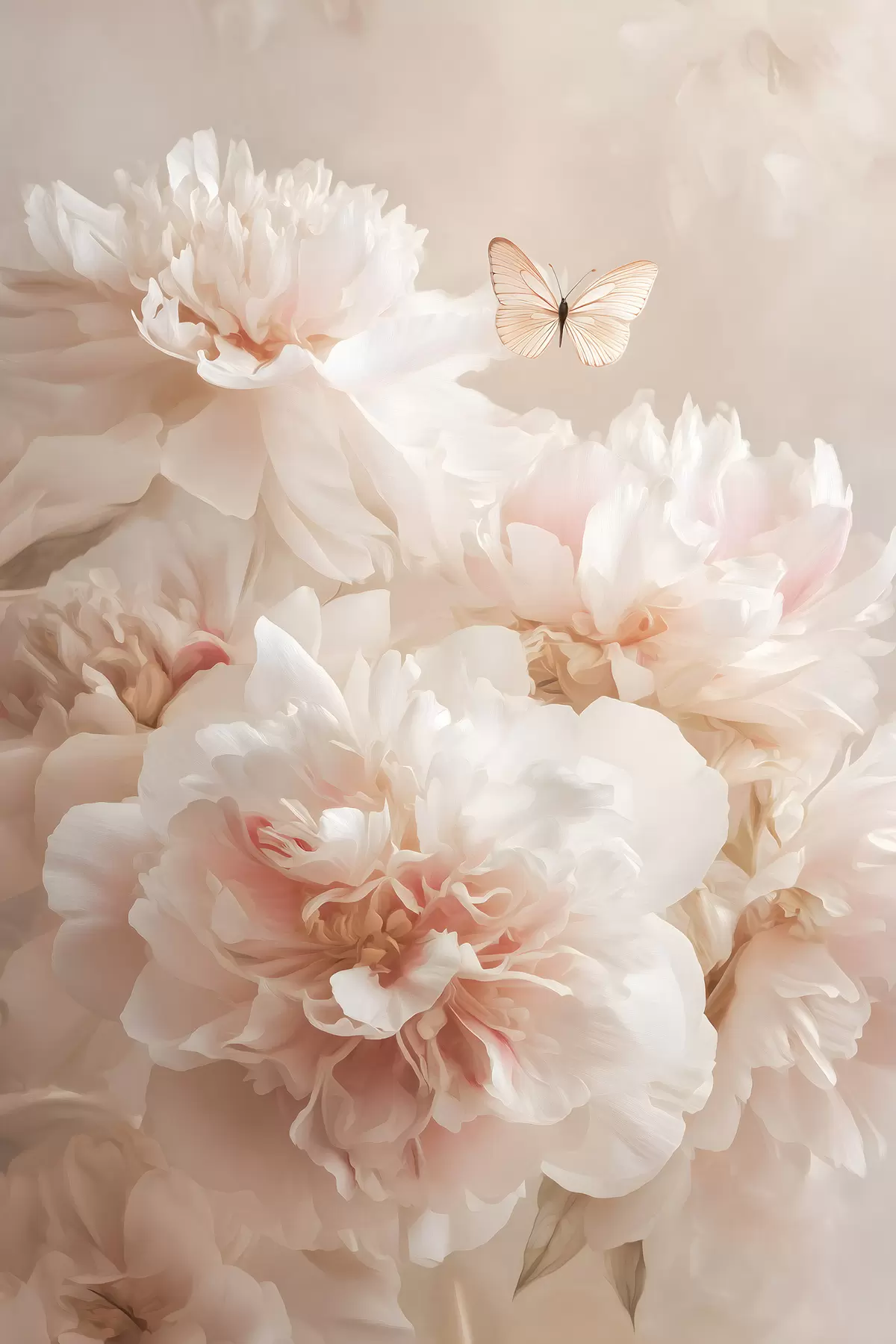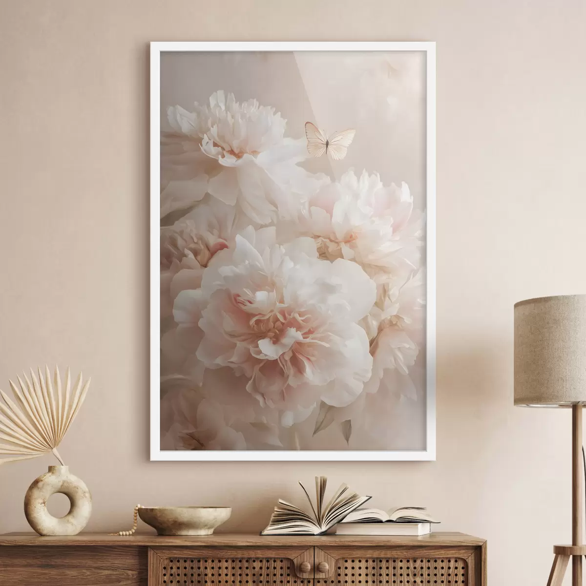Plakatas sultingos rožinės bijūnės su drugeliu f47954