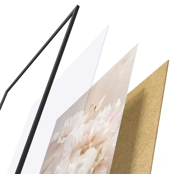 Plakatą sudaro rėmas, pleksiklas, atspausdintas vaizdas ir medžio drožlių plokštės pagrindas. Plakatą galima iš karto pakabinti ant sienos dėl kitoje pusėje esančių laikiklių.
