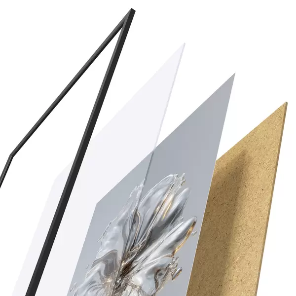 Plakatą sudaro rėmas, pleksiklas, atspausdintas vaizdas ir medžio drožlių plokštės pagrindas. Plakatą galima iš karto pakabinti ant sienos dėl kitoje pusėje esančių laikiklių.