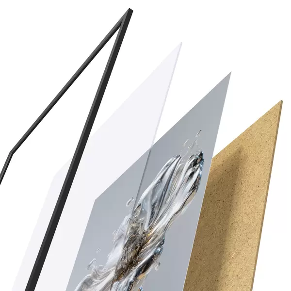 Plakatą sudaro rėmas, pleksiklas, atspausdintas vaizdas ir medžio drožlių plokštės pagrindas. Plakatą galima iš karto pakabinti ant sienos dėl kitoje pusėje esančių laikiklių.