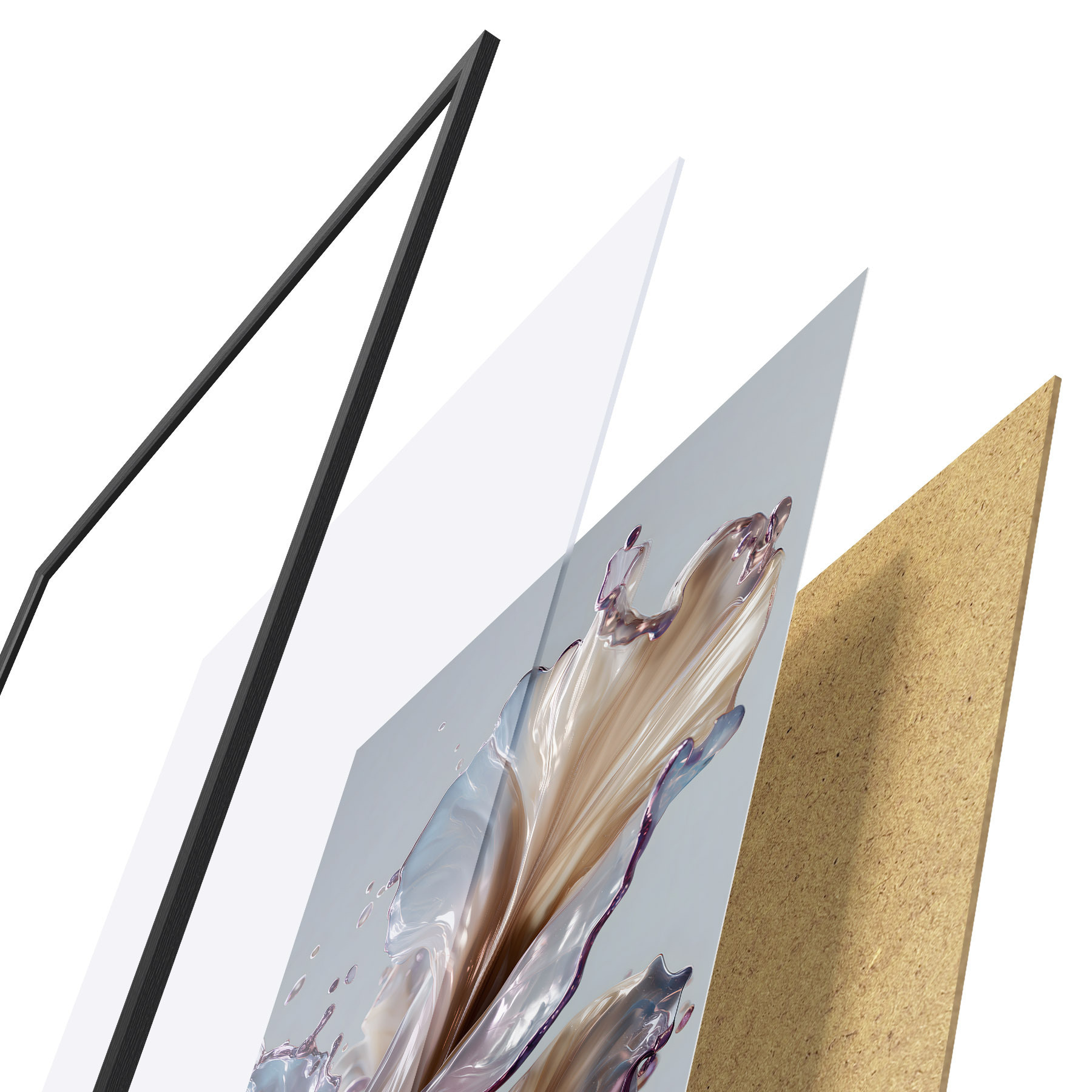 Plakatą sudaro rėmas, pleksiklas, atspausdintas vaizdas ir medžio drožlių plokštės pagrindas. Plakatą galima iš karto pakabinti ant sienos dėl kitoje pusėje esančių laikiklių.