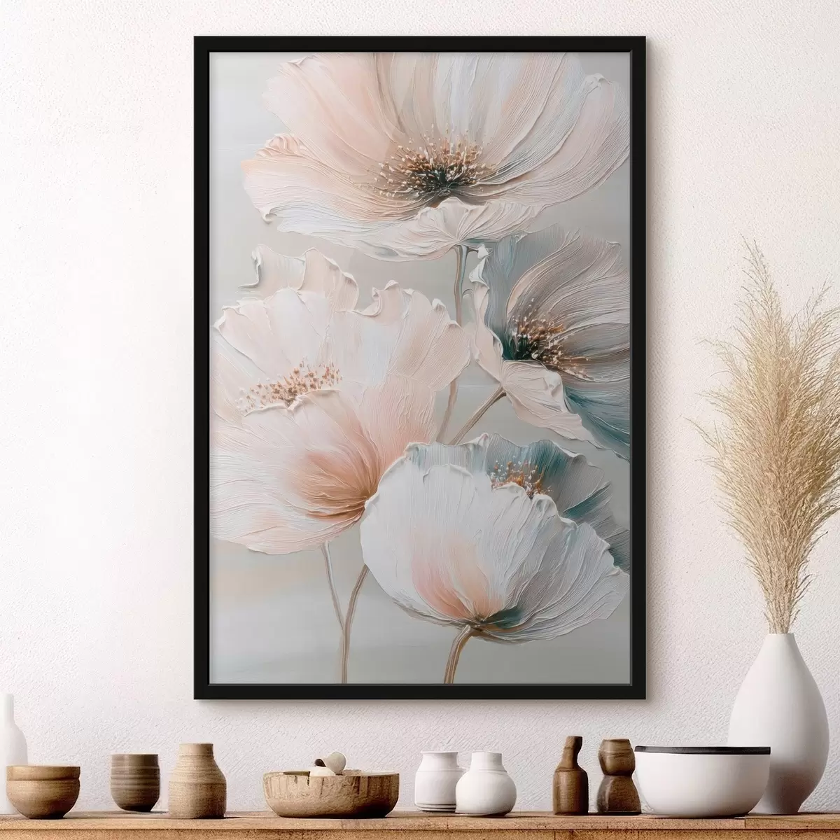 Plakatas Gėlių kompozicija su tekstūriniais potėpiais smėlio-rožinės spalvų paletėje f47961