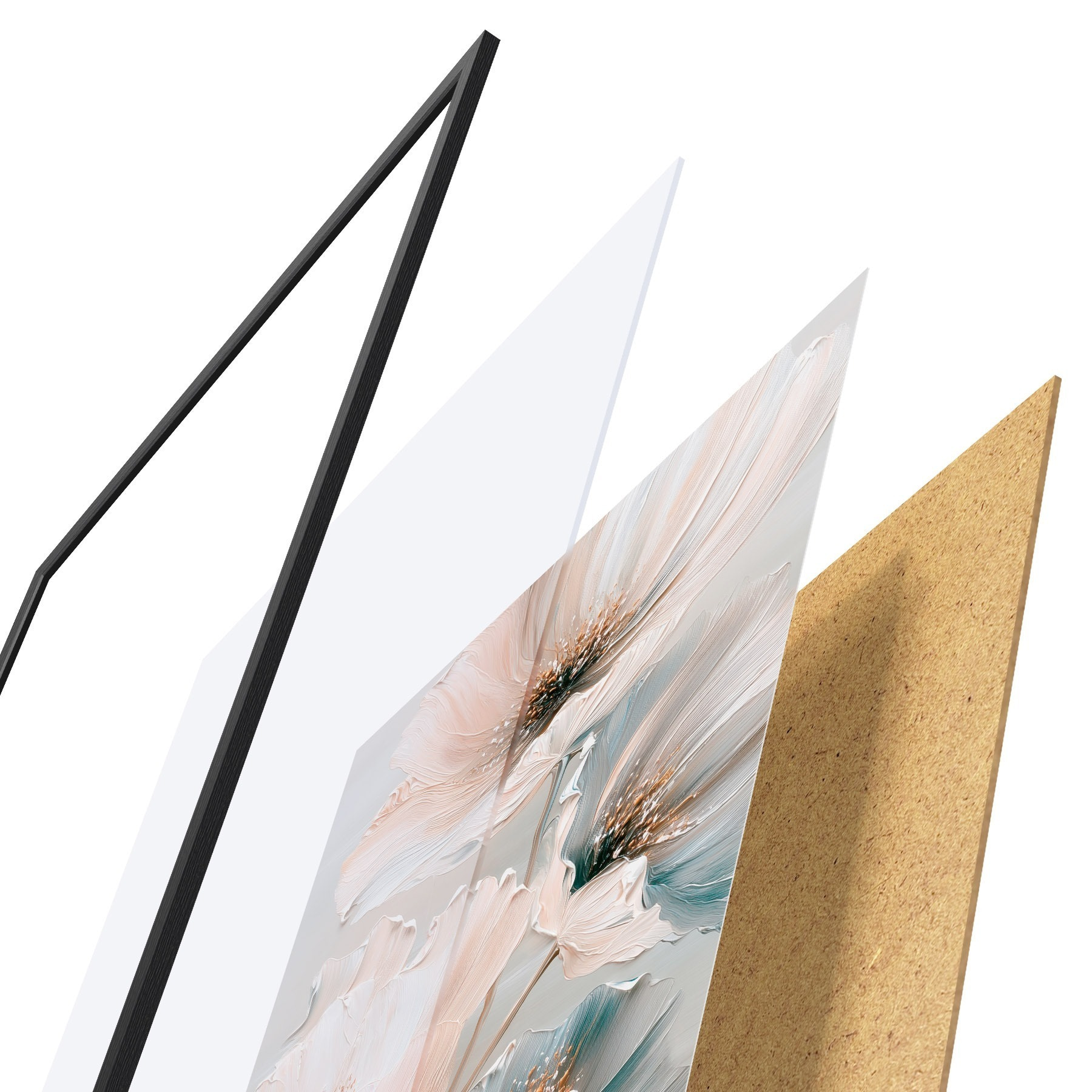 Plakatą sudaro rėmas, pleksiklas, atspausdintas vaizdas ir medžio drožlių plokštės pagrindas. Plakatą galima iš karto pakabinti ant sienos dėl kitoje pusėje esančių laikiklių.