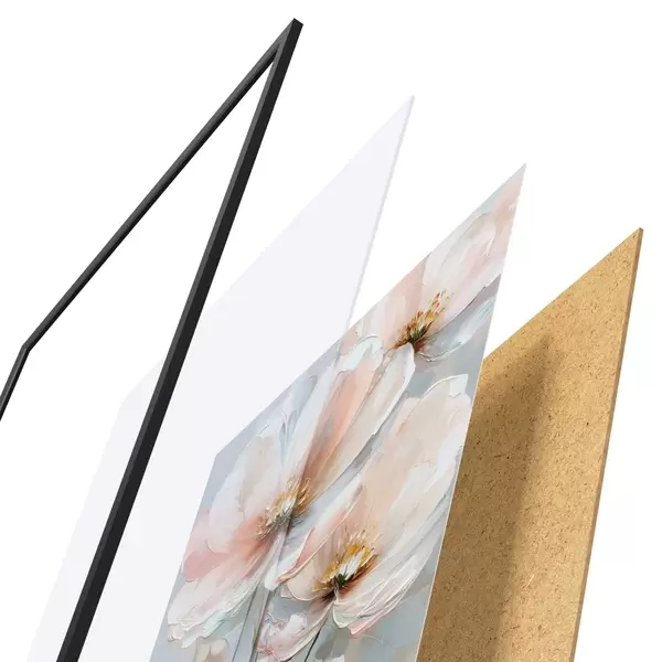 Plakatą sudaro rėmas, pleksiklas, atspausdintas vaizdas ir medžio drožlių plokštės pagrindas. Plakatą galima iš karto pakabinti ant sienos dėl kitoje pusėje esančių laikiklių.