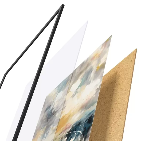 Plakatą sudaro rėmas, pleksiklas, atspausdintas vaizdas ir medžio drožlių plokštės pagrindas. Plakatą galima iš karto pakabinti ant sienos dėl kitoje pusėje esančių laikiklių.