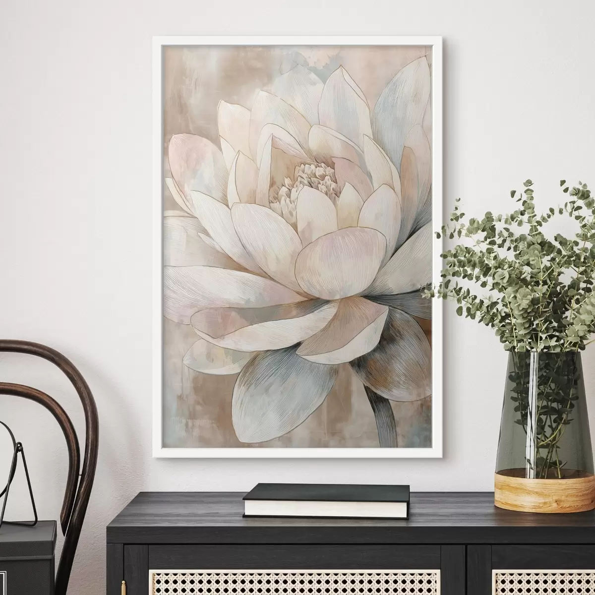 Plakatas Didelis lotosas pastelinėmis spalvomis minimalistiniu stiliumi f47973