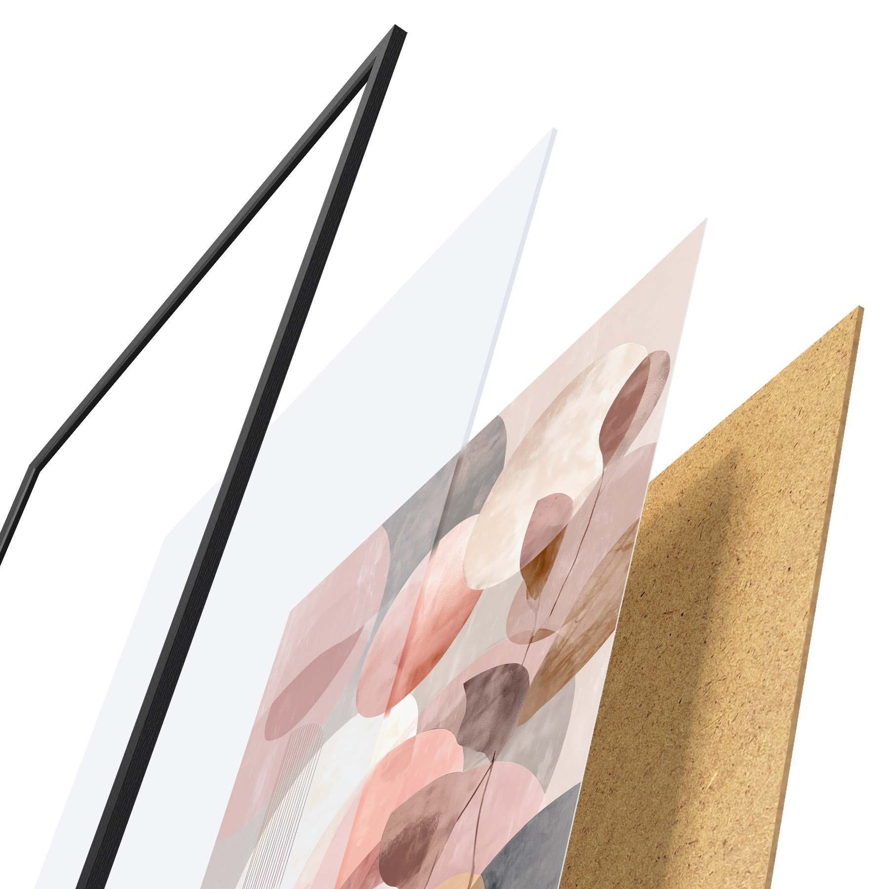 Plakatą sudaro rėmas, pleksiklas, atspausdintas vaizdas ir medžio drožlių plokštės pagrindas. Plakatą galima iš karto pakabinti ant sienos dėl kitoje pusėje esančių laikiklių.