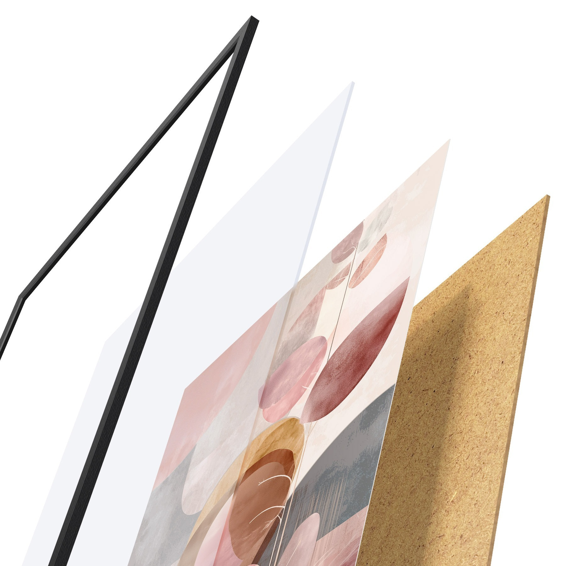 Plakatą sudaro rėmas, pleksiklas, atspausdintas vaizdas ir medžio drožlių plokštės pagrindas. Plakatą galima iš karto pakabinti ant sienos dėl kitoje pusėje esančių laikiklių.