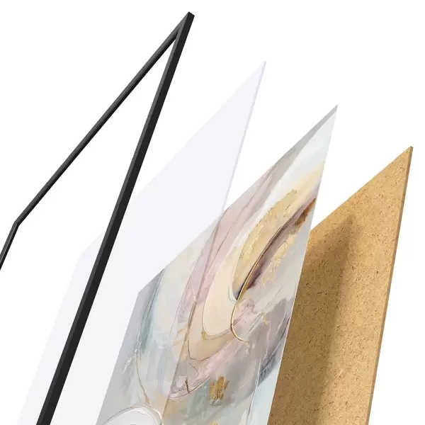 Plakatą sudaro rėmas, pleksiklas, atspausdintas vaizdas ir medžio drožlių plokštės pagrindas. Plakatą galima iš karto pakabinti ant sienos dėl kitoje pusėje esančių laikiklių.