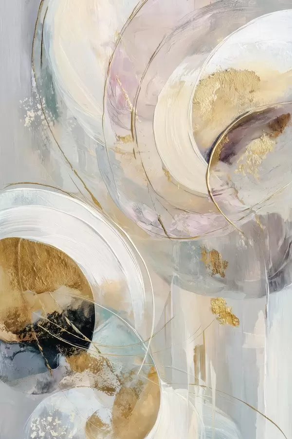 Plakatas Kompozicija su sluoksniais išdėstytais apskritimais elementais ir dažų potėpiais f47983