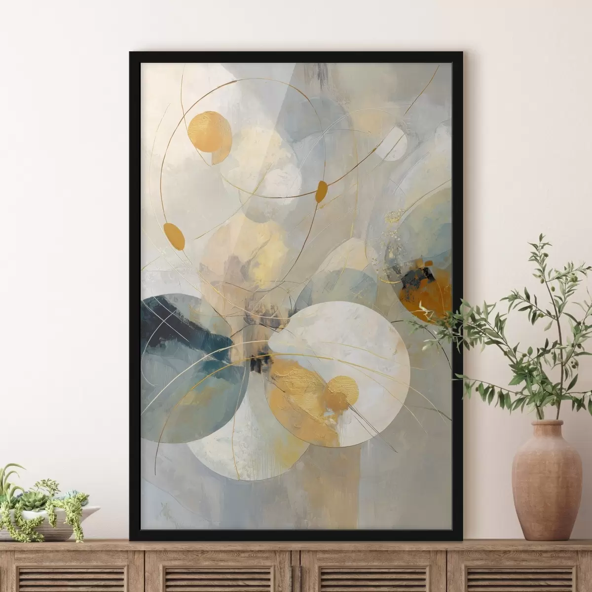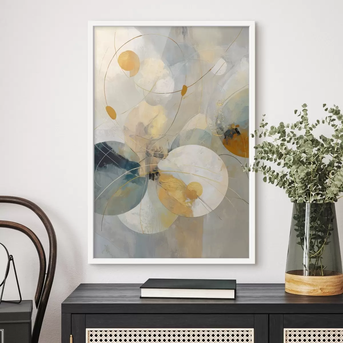 Plakatas Pusiau permatomų sferų ir tekstūruotų dėmių kompozicija f47985