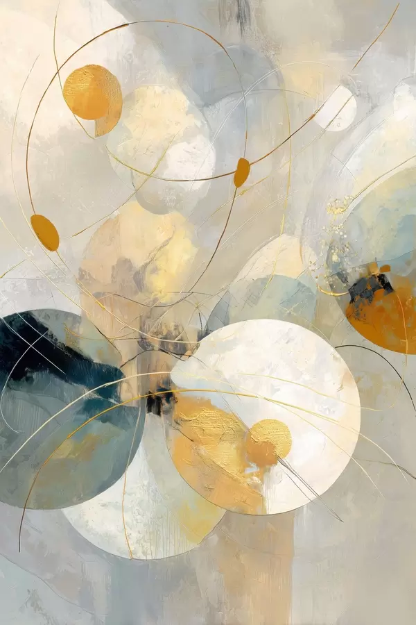 Plakatas Pusiau permatomų sferų ir tekstūruotų dėmių kompozicija f47985