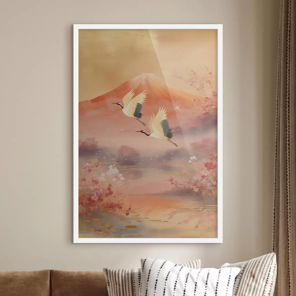 Plakatas Tradicinis rytietiškas motyvas su sakurų žiedais ir gervėmis Ne f47991