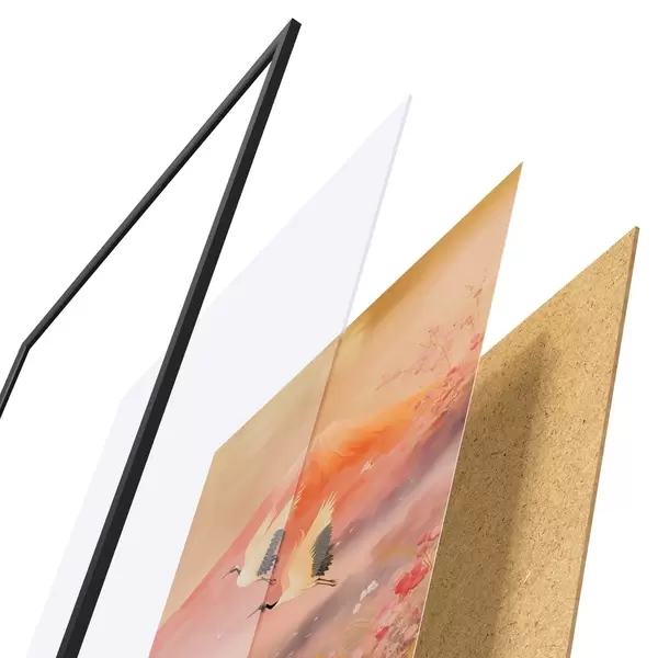 Plakatą sudaro rėmas, pleksiklas, atspausdintas vaizdas ir medžio drožlių plokštės pagrindas. Plakatą galima iš karto pakabinti ant sienos dėl kitoje pusėje esančių laikiklių.