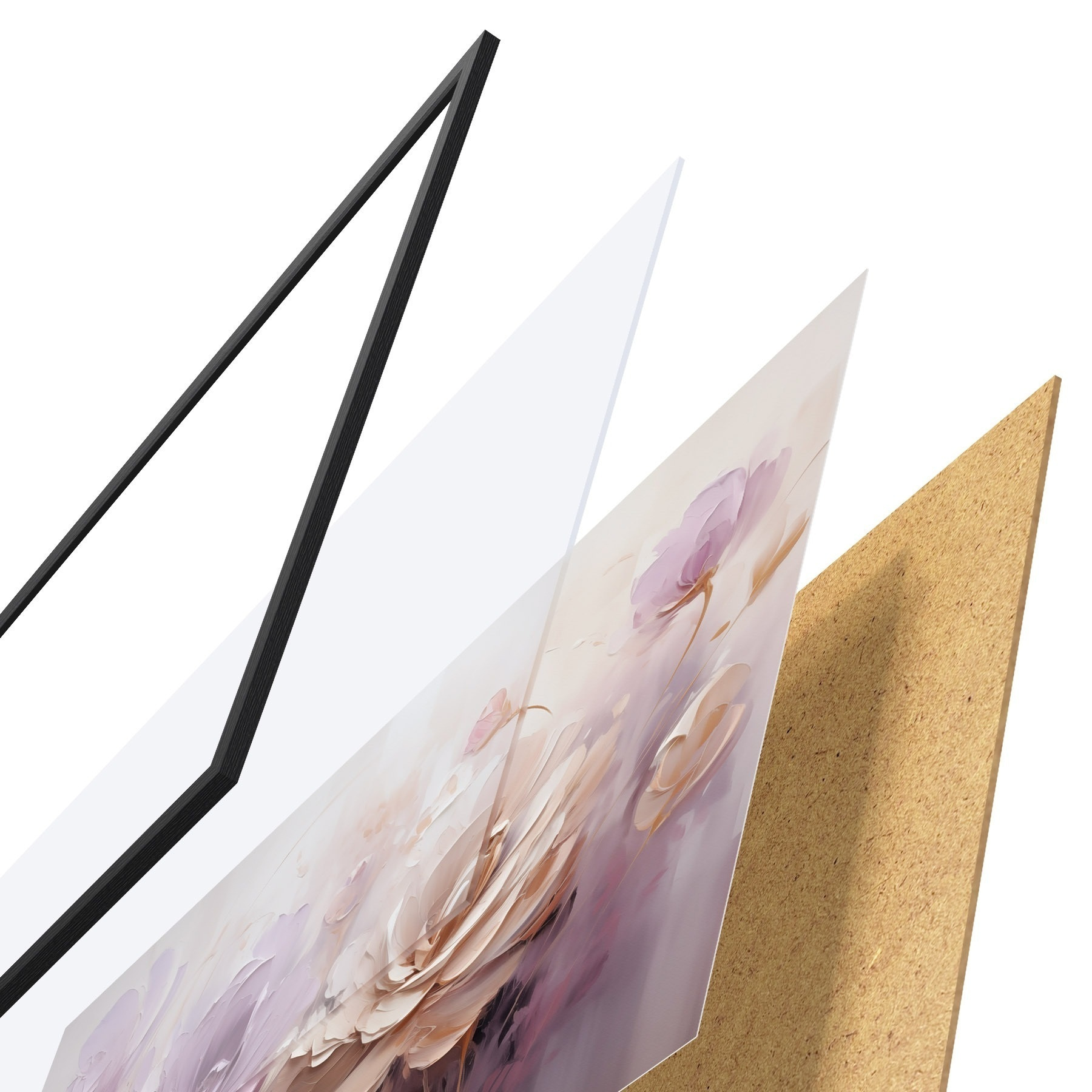 Plakatą sudaro rėmas, pleksiklas, atspausdintas vaizdas ir medžio drožlių plokštės pagrindas. Plakatą galima iš karto pakabinti ant sienos dėl kitoje pusėje esančių laikiklių.
