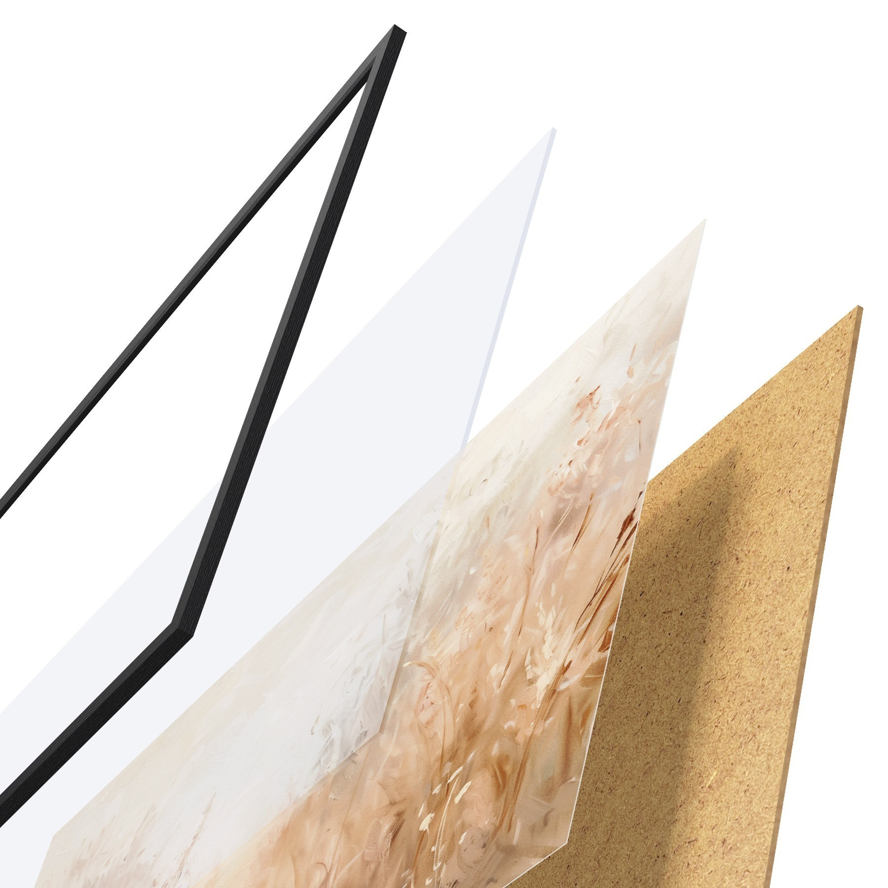 Plakatą sudaro rėmas, pleksiklas, atspausdintas vaizdas ir medžio drožlių plokštės pagrindas. Plakatą galima iš karto pakabinti ant sienos dėl kitoje pusėje esančių laikiklių.
