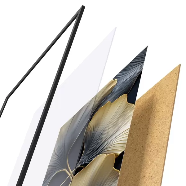 Plakatą sudaro rėmas, pleksiklas, atspausdintas vaizdas ir medžio drožlių plokštės pagrindas. Plakatą galima iš karto pakabinti ant sienos dėl kitoje pusėje esančių laikiklių.