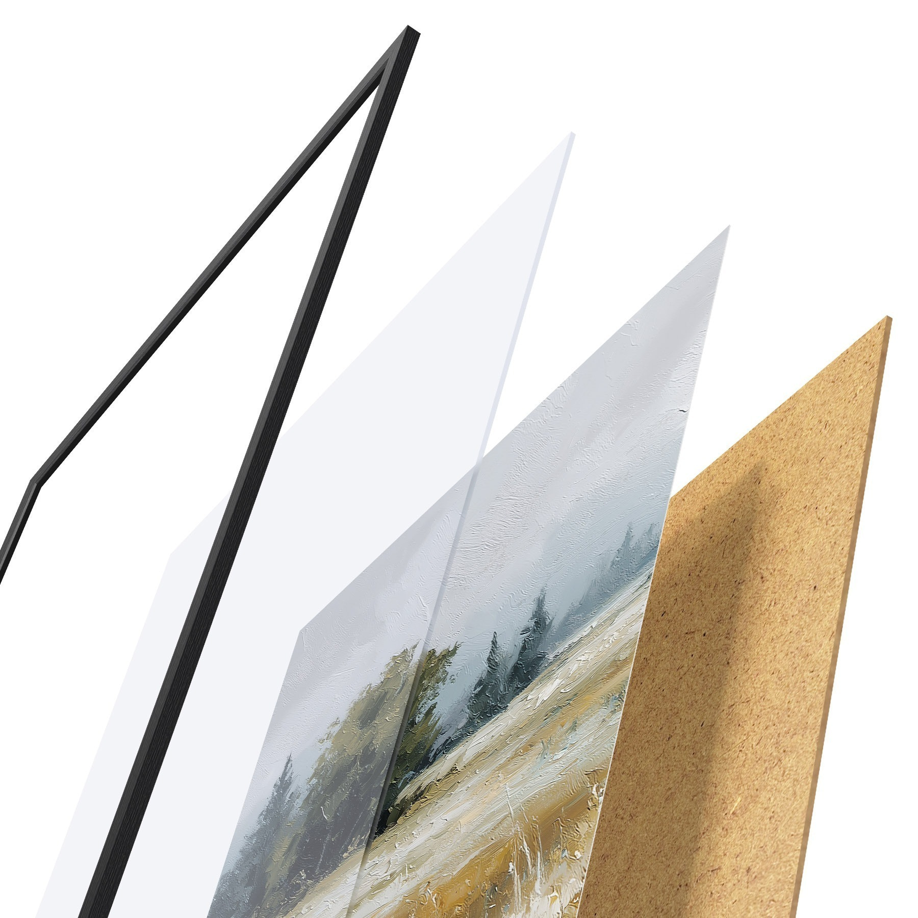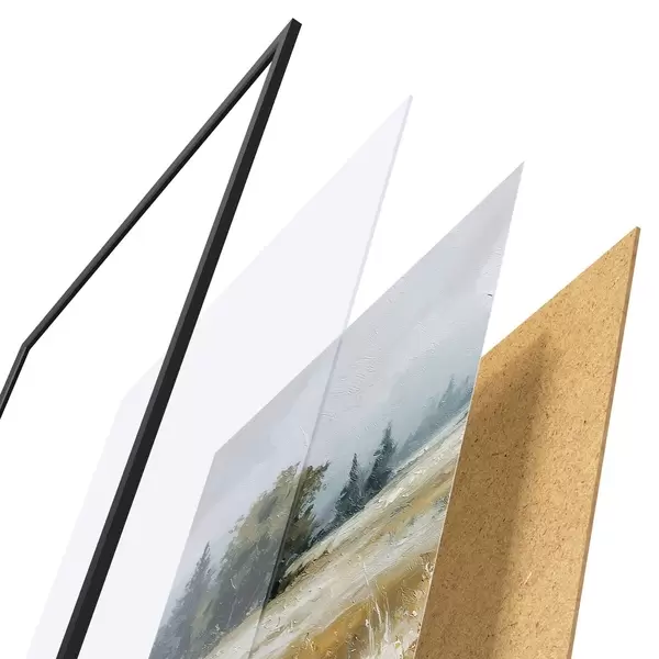 Plakatą sudaro rėmas, pleksiklas, atspausdintas vaizdas ir medžio drožlių plokštės pagrindas. Plakatą galima iš karto pakabinti ant sienos dėl kitoje pusėje esančių laikiklių.