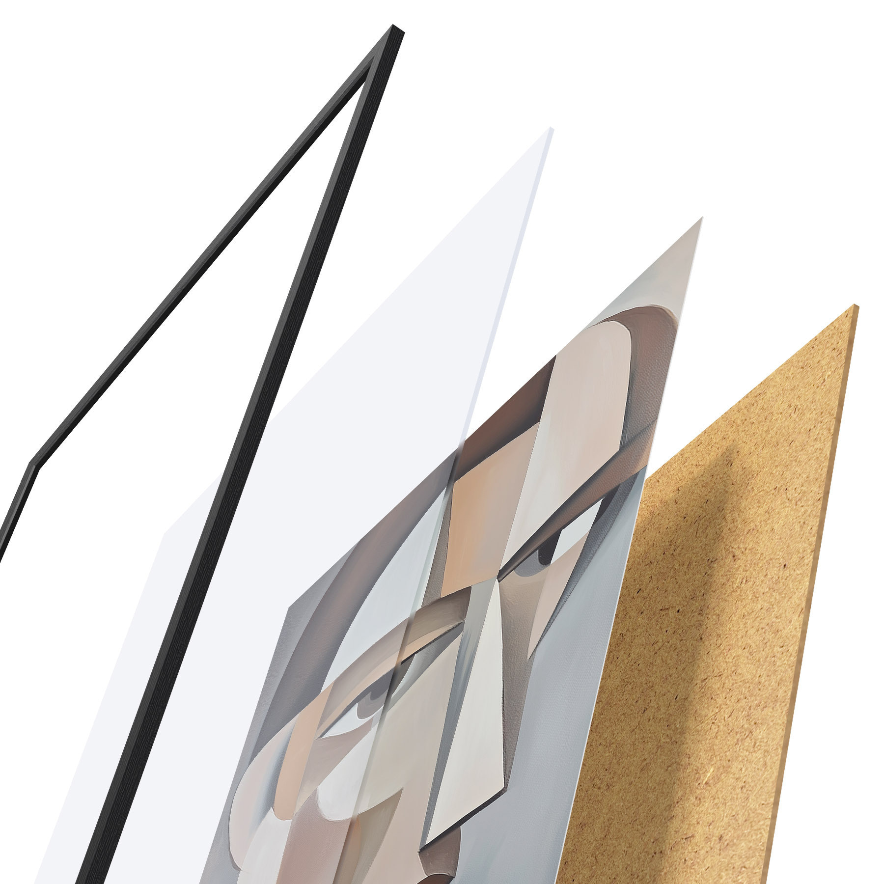 Plakatą sudaro rėmas, pleksiklas, atspausdintas vaizdas ir medžio drožlių plokštės pagrindas. Plakatą galima iš karto pakabinti ant sienos dėl kitoje pusėje esančių laikiklių.