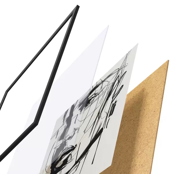 Plakatą sudaro rėmas, pleksiklas, atspausdintas vaizdas ir medžio drožlių plokštės pagrindas. Plakatą galima iš karto pakabinti ant sienos dėl kitoje pusėje esančių laikiklių.
