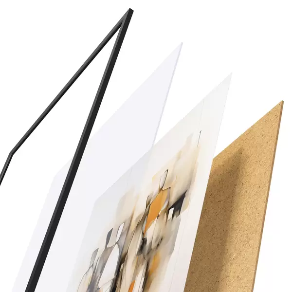 Plakatą sudaro rėmas, pleksiklas, atspausdintas vaizdas ir medžio drožlių plokštės pagrindas. Plakatą galima iš karto pakabinti ant sienos dėl kitoje pusėje esančių laikiklių.