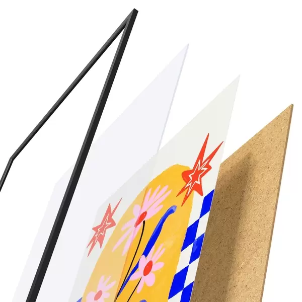Plakatą sudaro rėmas, pleksiklas, atspausdintas vaizdas ir medžio drožlių plokštės pagrindas. Plakatą galima iš karto pakabinti ant sienos dėl kitoje pusėje esančių laikiklių.