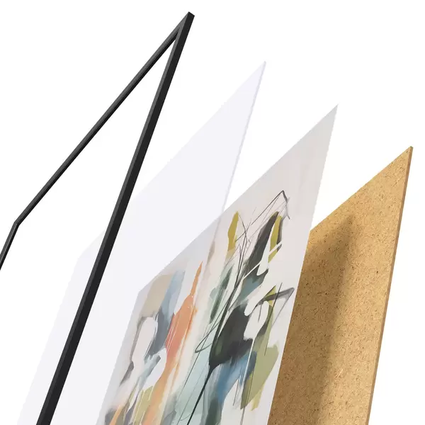 Plakatą sudaro rėmas, pleksiklas, atspausdintas vaizdas ir medžio drožlių plokštės pagrindas. Plakatą galima iš karto pakabinti ant sienos dėl kitoje pusėje esančių laikiklių.