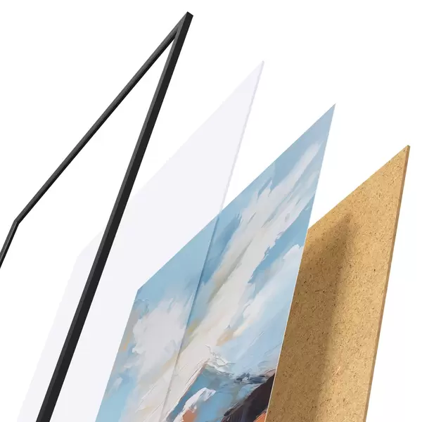 Plakatą sudaro rėmas, pleksiklas, atspausdintas vaizdas ir medžio drožlių plokštės pagrindas. Plakatą galima iš karto pakabinti ant sienos dėl kitoje pusėje esančių laikiklių.